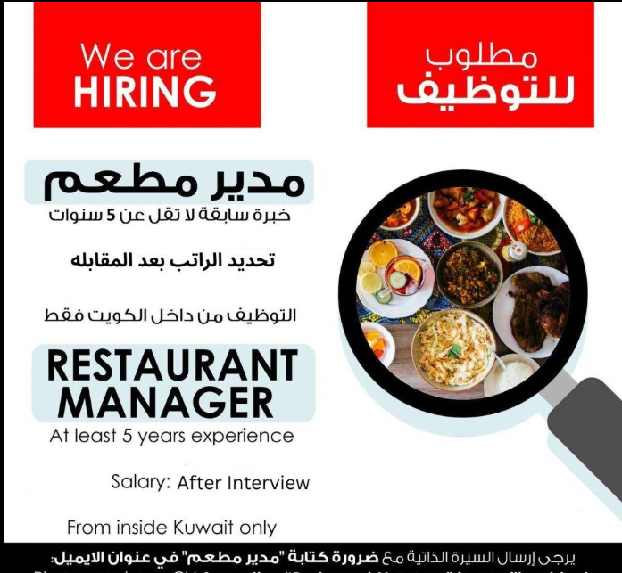 مطلوب مدير مطعم